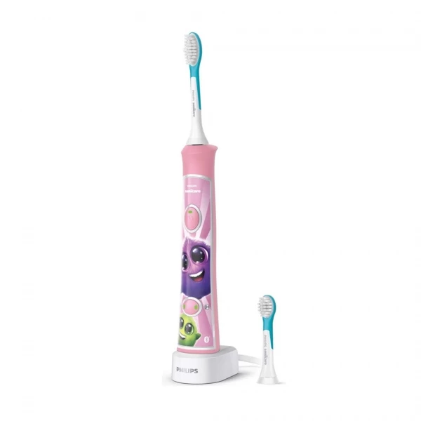 Elektrinis dantų šepetėlis vaikams PHILIPS Sonicare For Kids sukurtas remiantis kliniškai patvirtinta Sonic technologija, kuri švelniai, bet ypač efektyviai pašalina apnašas ir padeda formuoti taisyklingus burnos higienos įpročius nuo ankstyvo amžiaus. Dėl iki 62 000 šepetėlio judesių per minutę, mažesnės minkštos galvutės ir apsauginių šerelių briaunų, šis modelis yra idealus vaikams nuo maždaug 3 metų – jis nepažeidžia gleivinės, pasiekia sunkiau prieinamas vietas ir užtikrina aukštą kasdienio valymo kokybę. Du specialiai vaikams pritaikyti režimai („švelnus“ ir „standartinis“) leidžia palaipsniui pripratinti mažylį prie elektrinio valymo, o integruotas „KidTimer“ ir „KidPacer“ garsiniai signalai padeda laikytis rekomenduojamos dviejų minučių valymo trukmės bei tolygiai išvalyti visas burnos sritis.